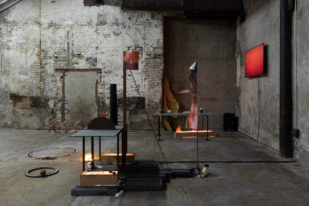 Its closure thus represents a palpable loss to live music, experimental film and many other grassroots performance and sound-art practices, which found a receptive and permissive home in the slightly grungy eclecticism of the former fruit warehouse in the north inner city. In addition, a number of practising artists from a range of backgrounds have been left without studios. Before the gallery space opened in 2019, the organisation had been running occasional once-off visual-art performances, screenings and installations for about a year, but once the gallery and its curator, Mark O’Gorman, were in place, a more substantial programme became possible. The small room in which it was housed, with bare walls of raw concrete and crumbling brick, and an old rusted beam frame, did not offer the most promising or flexible conditions for the exhibition of visual art, but O’Gorman embraced the specificities of the space, curating a programme that included several shows that explored and responded to the history and context of the building and the local area.
