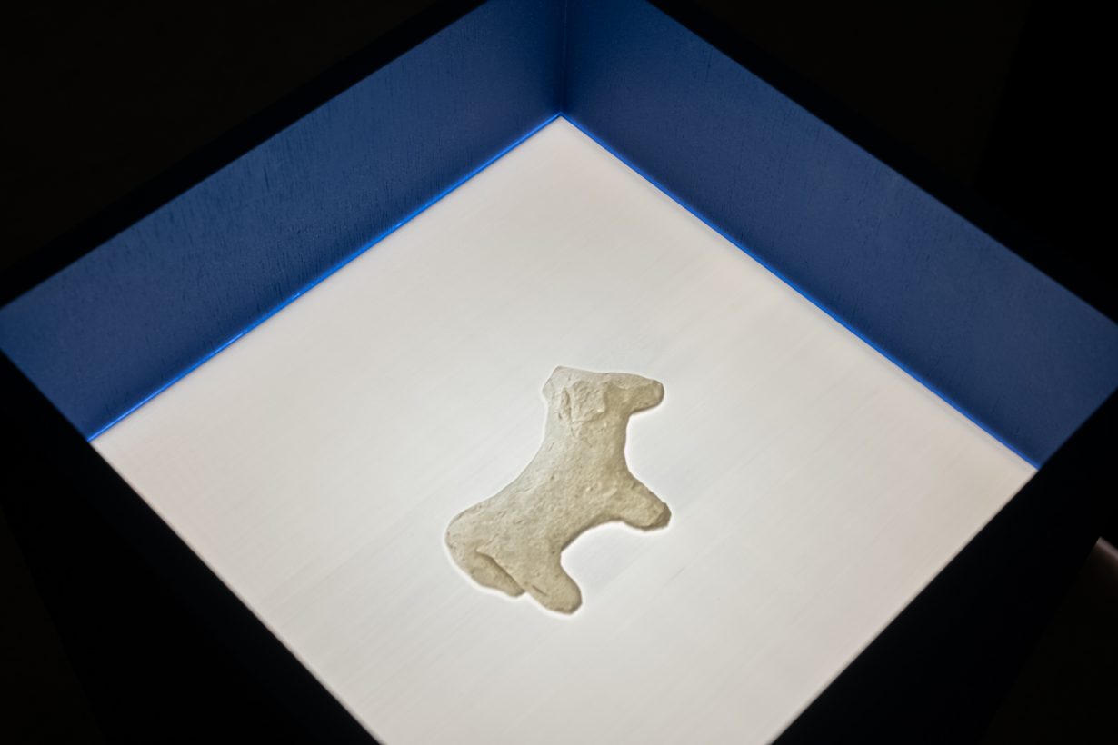That sentiment might also be applied to Ota Saburo’s 1948 murals of animals in their natural environments for Higashiyama Zoo in Nagoya, here neatly juxtaposed with Sugimoto’s works. They were painted to make up for the fact that most of the zoo’s large carnivores had been culled during the war at the military’s request: the place now felt, according to the wall caption, ‘lonely’, as if to cure an affective disorder that exists on an institutional level. As you progress through the Aichi Arts Center, you can’t help feeling that a similar role is performed for humans by works such as Hrair Sarkissian’s Stolen Past (2025), featuring lithophanes (a translucent plaque backlit to reveal a 3D image) documenting some of the 8,000 historic, Paleolithic-era-onward cultural artefacts once housed in the Raqqa Museum and looted or destroyed during the Islamic State occupation of Syria. And if Sarkissian’s work speaks also to the human desire to be rooted (as well, of course, as the seemingly equally human desire to uproot others), then that’s something just as knowingly played upon in Dala Nasser’s largescale sculpture Noah’s Tombs (2025). It’s a deconstructed, mini ark-cum-rest stop, made of dyed and rubbed fabrics, wood and netting that collages architectural elements drawn from the three different sites that claim to be the diluvian animal-herder’s tomb. You leave the sculpture with the lingering feeling that what it really describes is some sort of human equivalent of Ota’s murals or Sugimoto’s photographs. Even if there’s no attempt to replicate a plausible ark or a particular archaeological site, the idea subsists that it’s as good as real.