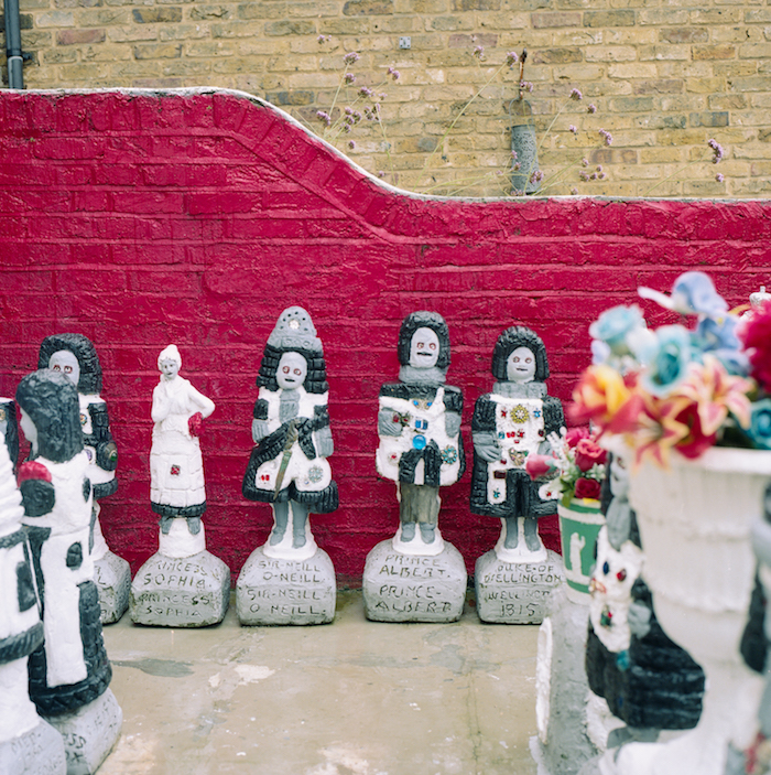 The overwhelming sense is of having entered a deeply idiosyncratic but fully realised imaginative world. The first statue made by this Irishman, according to an interview with Dalton recorded prior to his death, was of the Fenian poet Leo Casey, but the majority of his model buildings are occupied by English royalty and, with the notable exception of a dozen ‘Great Titans’, most of the statues in the garden depict figures from Britain’s imperial history. Dalton was one of the tens of thousands of Irish men and women who escaped poverty by settling in northwest London in the decades after the Second World War. His fascination with the pomp of British history (which was not uncritical, with Galitzine explaining his antipathy to Cromwell) offers an illuminating counterpoint to the Irish republicanism that flourished in the expatriate communities of nearby Kilburn and Kensal Rise. The way that this narrative is framed by any future museum will be crucial to understanding the cultural significance of Dalton’s work, perhaps even offer a different version of how the intertwined histories of Britain and Ireland were popularly understood after the latter’s independence.