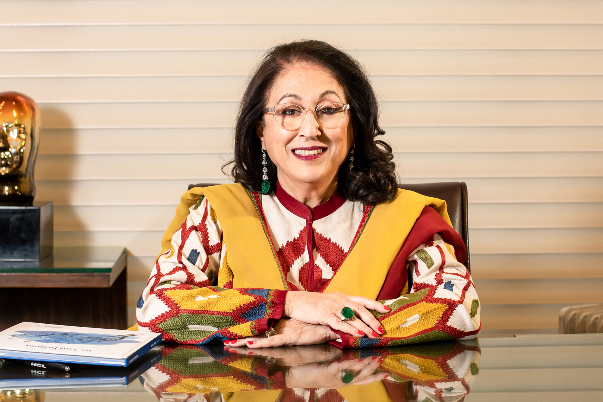 Art, Nadar says, is a ‘tangible interpretation of shared cultures and traditions’, and as the wife of tech billionaire Shiv Nadar, she has the means to help facilitate that sharing. With the vast David Adjaye-designed Kiran Nadar Museum of Art still a year off completion, she continues to loan works from her impressive collection of (largely Indian) art and to operate her museum out of a Delhi mall. There, housed between other global brands, you might have caught Caravaggio’s 1606 Mary Magdalene in Ecstasy, recently shown with the help of the Italian Embassy. It’s Indian and South Asian art, however, for which Nadar is the real ambassador, with a collection of 14,000 modern and contemporary artworks, to which she added M.F. Husain’s largescale 1954 painting Untitled (Gram Yatra), bought in New York for $13.8m. Nadar’s museum has been forging partnerships with MoMA, the Met, Pompidou, Tate, London’s Barbican and Qatar Museums, where KNMA’s hybrid Husain immersive show (first presented in Venice last year) made a stop, while a 190-work-strong retrospective of artist and poet Gulammohammed Sheikh was staged back in Delhi.