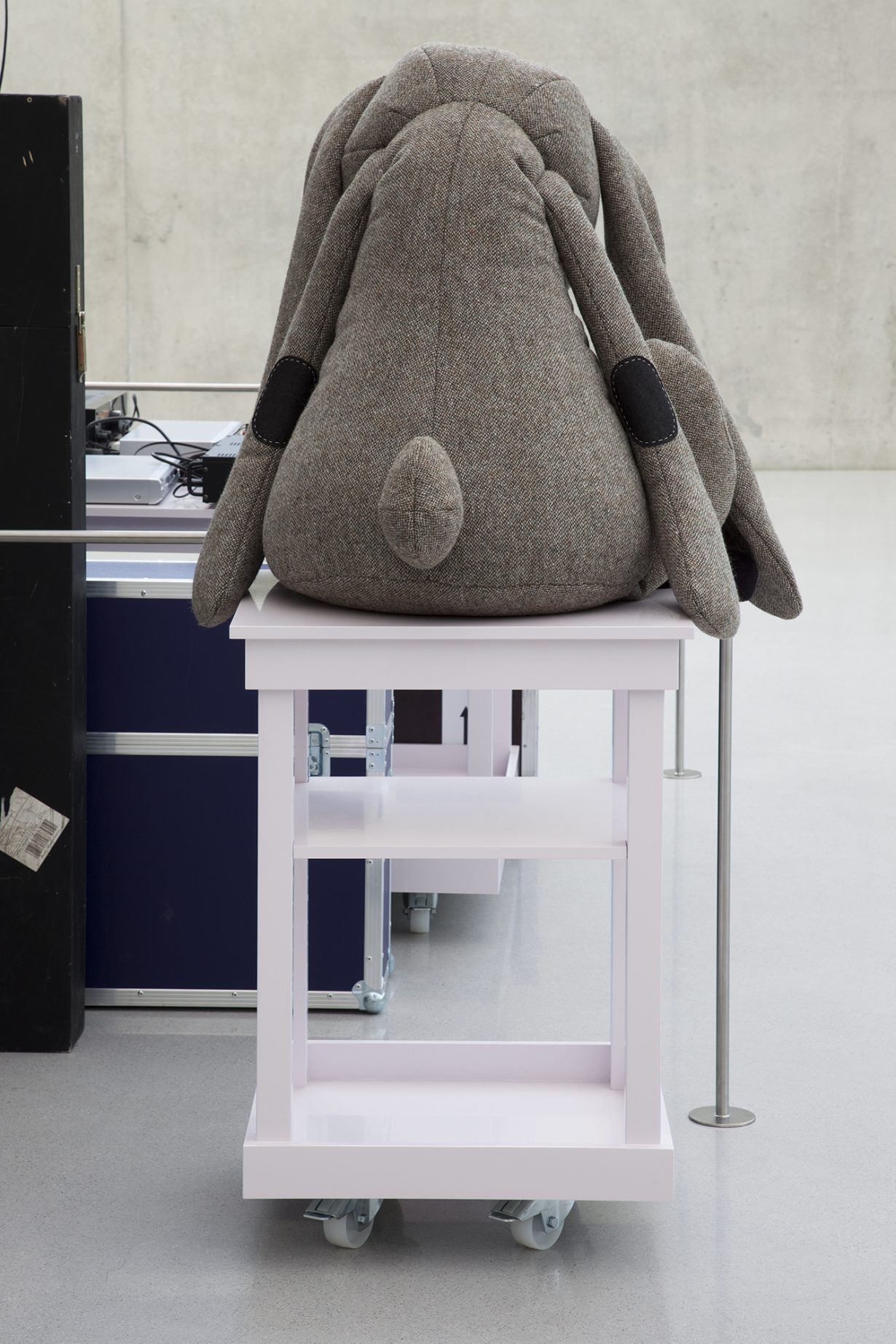 Taste, seriousness, class arrogance, failure, bad taste, humility – all these are poised in awkward, comic balance. And as the sagging animals flop and slump, too tired to pick themselves up (one tweed rabbit is so fatigued it can’t help but crush its little crab companion under its slumping paw) you get the sense that von Bonin’s provocations cut several ways: across the art museum’s sense of decorum, and across the self-regard of collectors who might think they’re insiders to the joke von Bonin is telling about art. But it might be that the joke she’s telling is really addressed at us, about our own troubles with all the problems we have with what we value – about taste, pleasure, fashion and the word ‘art’, and why it’s still there.