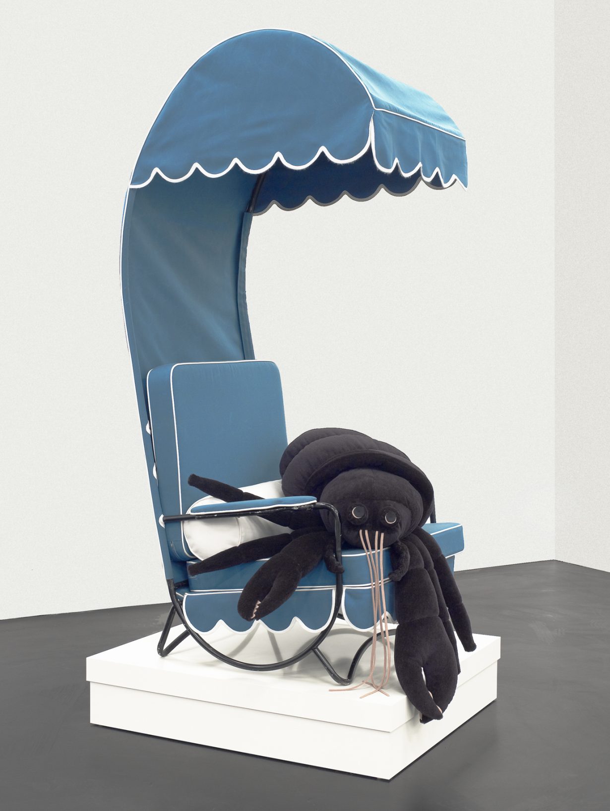 Taste, seriousness, class arrogance, failure, bad taste, humility – all these are poised in awkward, comic balance. And as the sagging animals flop and slump, too tired to pick themselves up (one tweed rabbit is so fatigued it can’t help but crush its little crab companion under its slumping paw) you get the sense that von Bonin’s provocations cut several ways: across the art museum’s sense of decorum, and across the self-regard of collectors who might think they’re insiders to the joke von Bonin is telling about art. But it might be that the joke she’s telling is really addressed at us, about our own troubles with all the problems we have with what we value – about taste, pleasure, fashion and the word ‘art’, and why it’s still there.