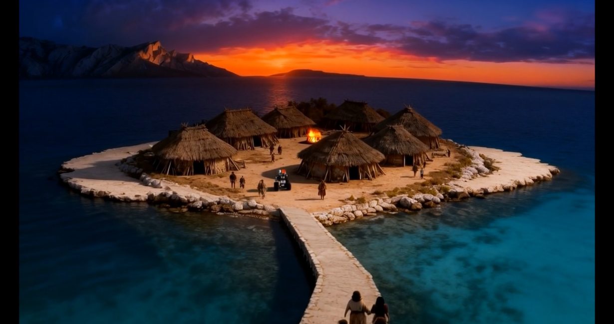It’s odd to think of The Island as Steyerl’s ‘back to basics’ moment, but as culture drifts further into the delusional and solipsistic nihilism of mimetic AI and of isolated, paranoid individuals, the artist’s insistence on the fact of material reality, of place and people, also seems to signal the limit of a certain period of critical art, with which Steyerl has been long identified. Here instead is a shift to an idea of the art as affect and affirmation – an uncertain, perhaps positive return to the power of aesthetic experience and production, and the human agency – against the tide of slop – it implies.