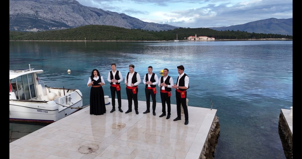 But it also renders itself in another form, which unlike the AI slop is also a human-made art. There’s an oddly conservative conclusion to The Island, though if it’s ‘conservative’ it’s in the sense of wanting to retain what is worth preserving. The Island ends with an astonishing choral finale, as six members of Klapa Ivo Lozica, standing on the quayside of Korčula, sing a paean to the sea at day’s end. Lyrically it’s steeped in folkloric traditionalism, a mythos of place and rootedness (a big shift for Steyerl, whose visual lexicon has tended to be those of techno music videos, cable news idents and online gaming). Aesthetically, the resonance of the singers’ close harmonies, shaking the gallery’s sound system, brings us back to the physical presence (though still mediated by technology) of human voices and human bodies, and the material relationships between them.