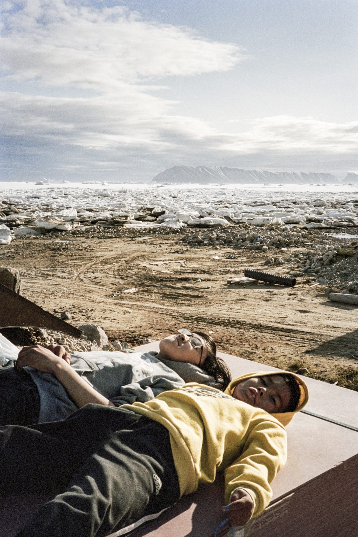 The exhibition title mirrors that of a 2023 series taken in Qaanaaq, one of the most northerly settlements of Kalaallit Nunaat and one of the last to be colonised by Denmark. It’s a place where the sun shines nearly 24 hours per day in the summer. Framed by the otherworldly Greenlandic scenery, the mundane moments of kids riding their bikes or neighbours sharing a cigarette deny any instinct to ‘other’ Kalaallit Nunaat; instead it comes across as a vibrant living, breathing place, imbued with beauty and banality. This is also a curious moment of reflection for the photographer, whose reputation has soared in recent years thanks to his representation of Denmark at the Venice Biennale in 2024. There, Storch’s presentation Rise of the Sunken Sun made him not only the first photographer and youngest artist to represent the Kingdom of Denmark, but the first Greenlandic artist too. The display of several hundred photographs brought to light stories of both individuals and communities, and their connection to the wild landscape.