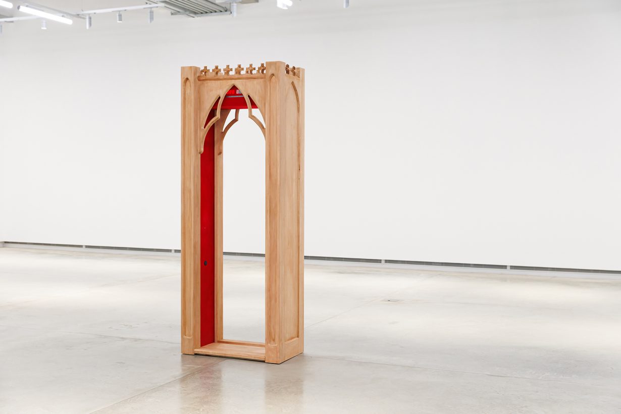 Swinging the baseball bat leaning by the entrance against the wall – an iteration of Marco Fusinato’s Constellations (2015–25) – sends out a 125-decibel boom that causes nearby visitors (including anyone, as a video meme points out, using the toilets) to tremble. Nearby, stepping through a wooden arch accented with neo-gothic crosses – Hugh Hayden’s Untitled Threshold (After Victor Horta After Charleston) (2019) – sets off the beep-beep of a metal detector. These works could fuel several conceptual readings (the latter was conceived in the wake of the 2015 Charleston church shooting, the wall text points out), but the message here seems to be, simply: this is a show we want you to inhabit, and feel, rather than passively observe.