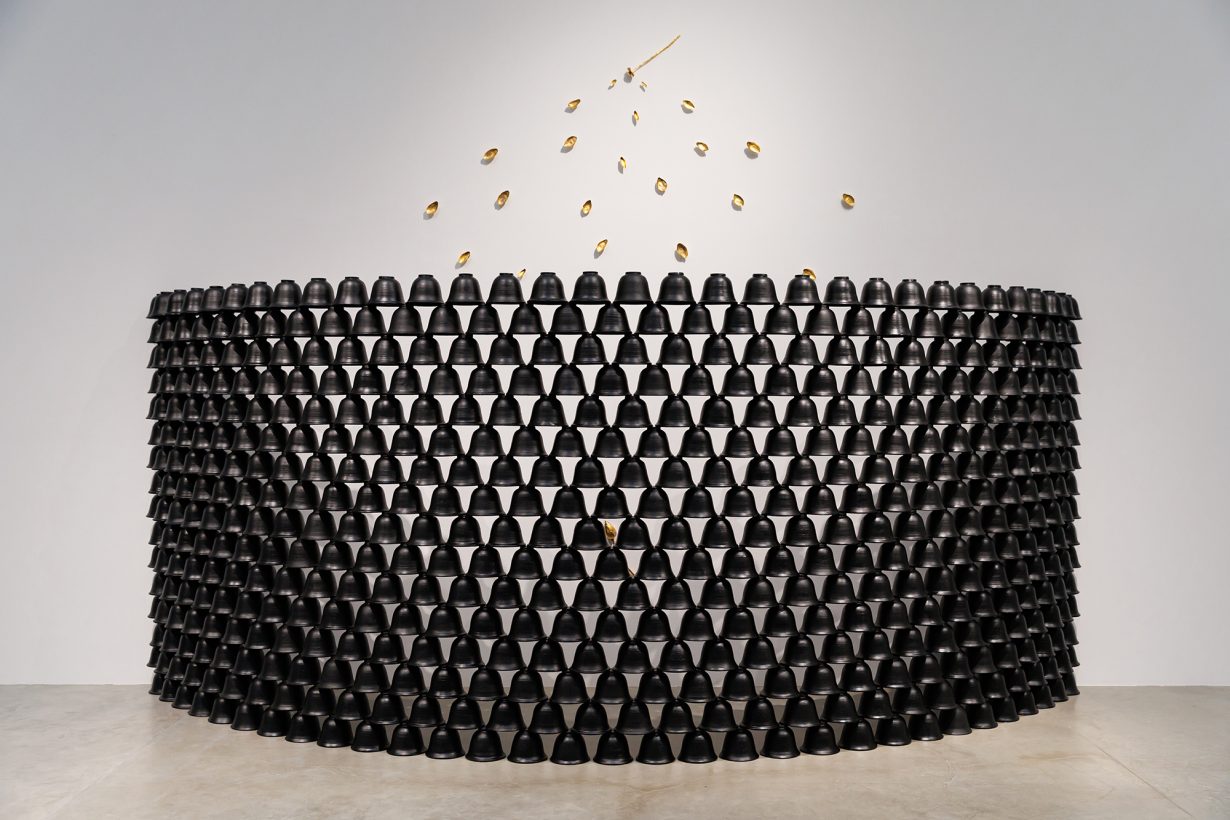 You could argue that this ratio merely reflects Osathanugrah’s collecting habits, but such juxtapositions serve to state, implicitly, that Thai artists deserve equal critical weight – that they can hold their own against those lionised by the international artworld. Aside from serving Thai artists, this approach leaves one with the impression that, if done well, it also serves Thai art history, furthering its evocation and enrichment at home. On the top floor, a room featuring an astonishing installation by Anselm Kiefer (Der verlorene Buchstabe, 2019) sits next to two wondrous rooms dedicated to the works of the late Montien Boonma, the Thai 1990s figurehead whose clay handprints, walls of bell-shaped vessels and transfiguration of hen cages, soil, herbs and candle wax still command awe and respect in the country today, albeit usually from afar.