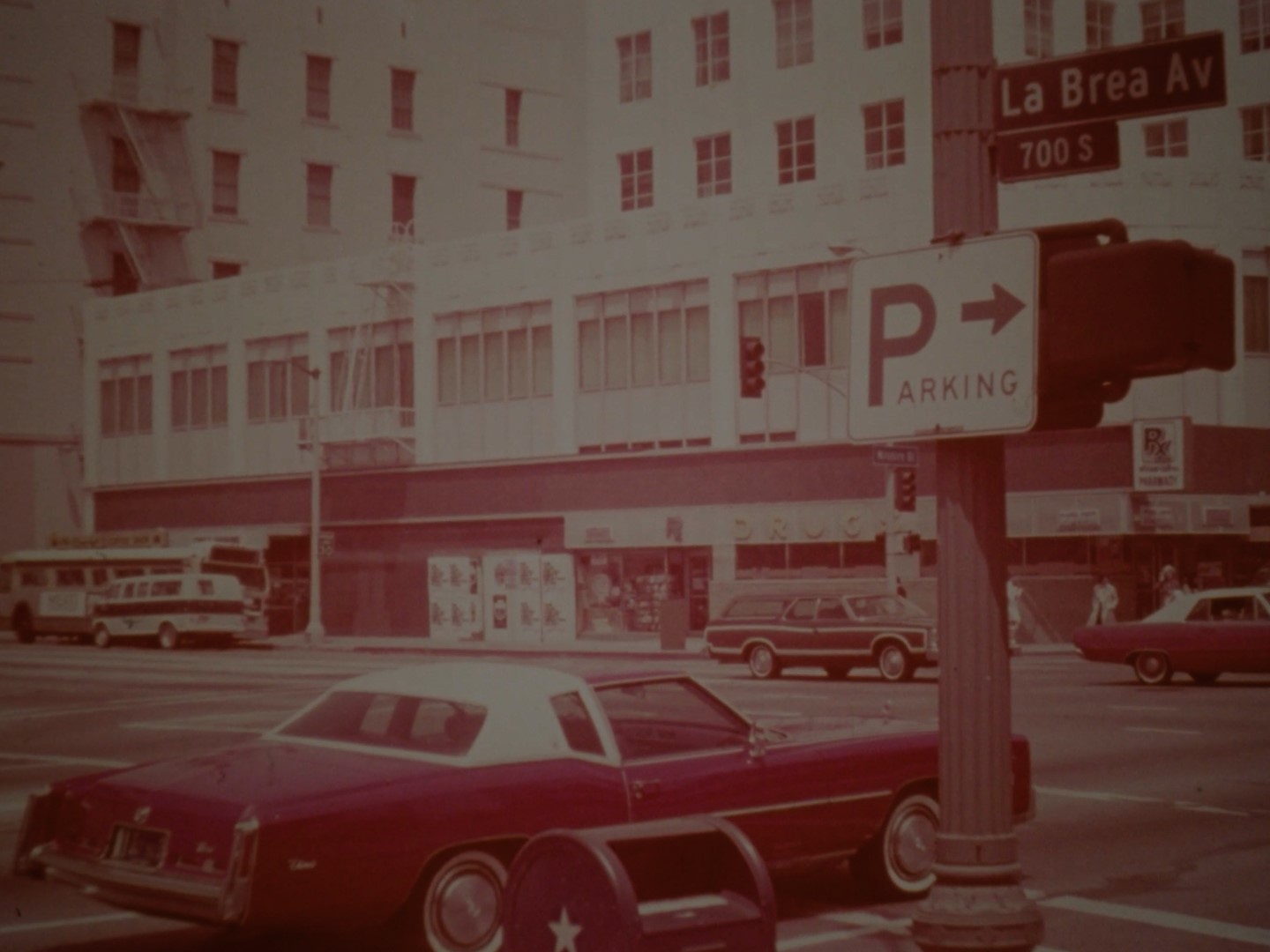 The most thoughtful, relevant explorations on view feel diluted by muddled display, especially in photography and video selections. In a second-floor gallery Peter Tomka presents eerily intimate analogue photographs of everyday still lifes and self-portraits, the result of the artist turning his studio apartment into a homemade camera and darkroom. Across the museum’s terrace, Mike Stoltz’s standout four-channel video installation Pinktoned (Exploded View) (2025) dismantles past and present la street views into component parts, with aged pink slides and contemporary shots appearing on adjacent TV screens. Nicole-Antonia Spagnola’s one-channel video 1-2-3: Apartment Gallery (2025), hidden in a hallway near the restrooms, is a wittily stylised, self aware pastiche of reenacted film tropes. Elsewhere, THEATER (2025), a captivating six-episode narrative series by New Theater Hollywood proprietors Calla Henkel and Max Pitegoff, uses documentary footage from NTH’s own stage productions to chart the fictional restoration of an abandoned venue by a fresh Angeleno ‘avant-garde’.