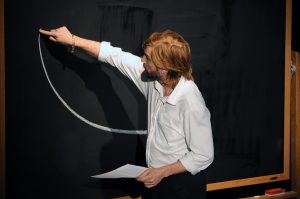 On the two other floors, the sections titled ‘Zenith’ and ‘Dawn’ are less focused, perhaps because the idea of time’s crescendo or some beginning to time is hard to imagine in these unrelentingly simultaneous times. When Marseille wakes up it is already midafternoon for Tokyo, so where, when, does the day begin? The best moments are surprises: Random International’s Self Portrait (2010) appears at first glance to be a painting-size blank canvas framed in aluminium, but in fact takes the portrait of whoever was standing in front of it and prints it instantaneously (and temporarily) with light onto an emulsion surface. Its effect is to see one’s wish for inclusion in the very thing one has come to watch tantalisingly fulfilled. Robert Breer’s Floating Wall (2009–10) is just that – an entirely unremarkable, bare L-shaped white wall that moves at an imperceptible speed back and forth across the centre of the gallery. One moment it is crowding Marina Gadonneix’s photographs; 15 minutes later it is awkwardly marooned in the middle of the room. The specially commissioned Title to Come (2015) is Anita Molinero’s idea of a horizon – a series of extruded polystyrene plaques torched with a flamethrower, forming a horizon in multiples that is beautiful without the pretence of innocence.