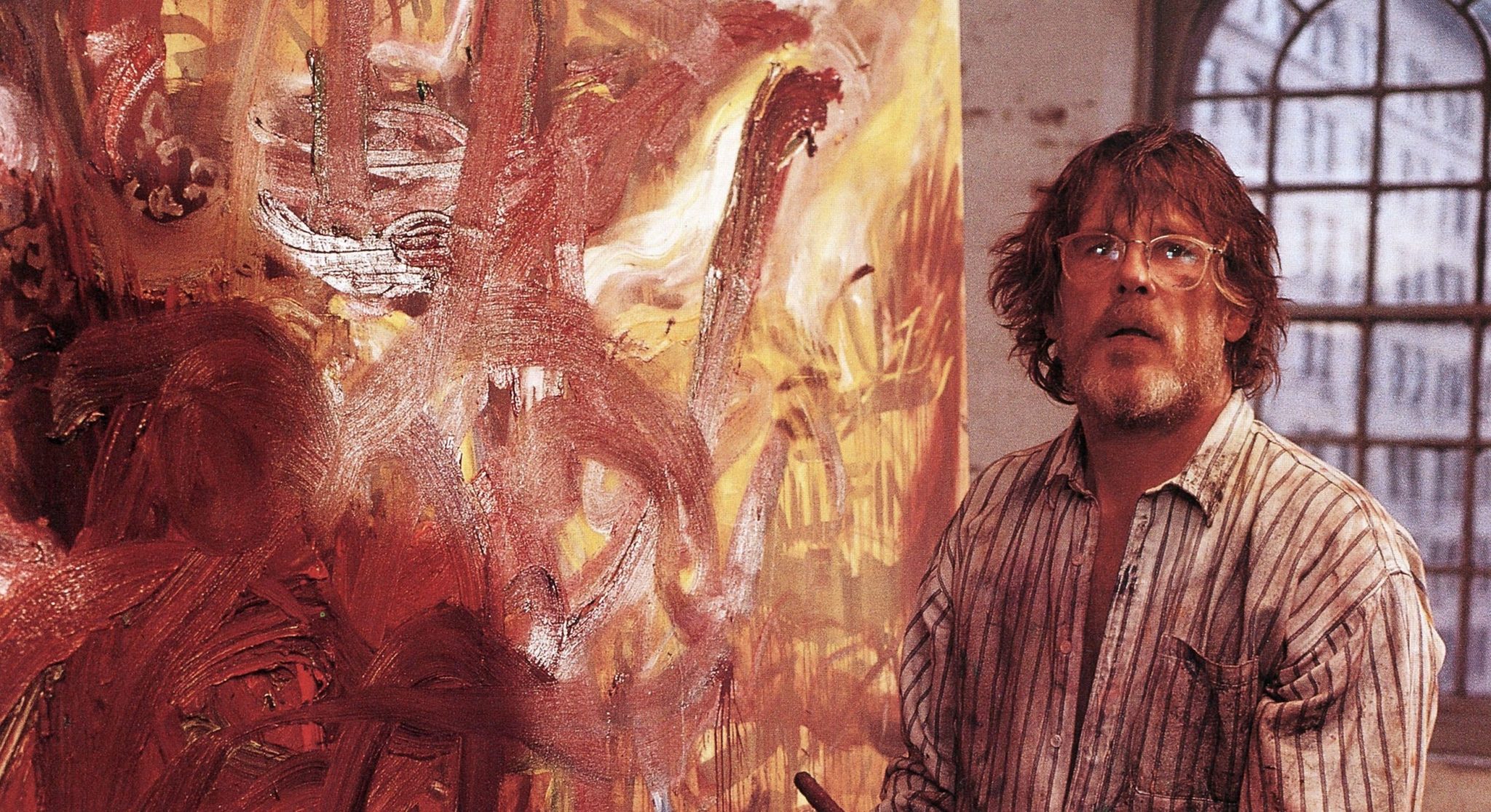 Why they live in their rustic compound, with their cook and caretaker, we never find out. Wild makes abstract collage, Suter more expressionistic canvases, mixing strange paints from natural ingredients. They discuss Vivian’s upcoming trip to a big exhibition of her work (it could be this year’s Documenta 14), and what clothes she should pack. They talk of their past, of Vivian’s ex-husband, hinting at his violent departure from their otherwise idyllic, if claustrophobic, little world. Rain falls on the garden outside and contented dogs snooze on sofas.