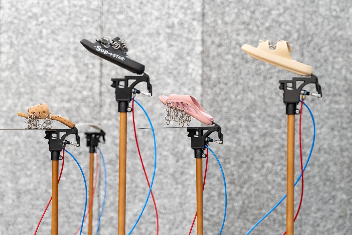 Flip-flop season may be over in the northern hemisphere, but one Parisian department store will still be stocking the shoe this October, or at least its art foundation will. Lafayette Anticipation, the Galerie Lafayette’s contemporary art space, is being outfitted with Meriem Bennani’s site-specific audio installation Sole Crushing. The work, an adaptation of the piece which premiered last year in another fashion-adjacent institution (the Fondazione Prada in Milan) features over two hundred flip-flops stomping, via a pneumatic contraption, to the rhythm of a musical score by Cheb Runner. Bennani is perhaps best known for her viral pandemic-lockdown-era 3D-animated series 2 Lizards (2020). Her latest work explores notions of the individual and the collective in the form of a ballet mécanique, telling stories with automated movement: from a soloist’s anxious tap tap of the foot or outraged shoe banging à la Khruschev, to a chorus of steps evoking crowds dancing in Moroccan Dakka Marrakchia celebrations, clapping in a stadium or marching in a protest. Mia Stern